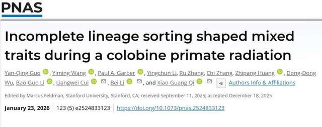 其实,这是生物学中的一种现象,被称作“混合性状”。以针对“戴帽乌叶猴种组”研究为突破口,西北大学生命科学学院灵长类行为与进化发育研究团队历经数十年研究,在动物复杂性状形成机制领域不断探索,获得重要研究进展:他们发现,“不完全谱系分选”是塑造叶猴亚科灵长类辐射演化中的混合性状的主要驱动力,同时阐明了物种在快速分化过程中镶嵌式混合表型与基因型关联的演化模式,为理解灵长类表型多样性的形成提供了新视角。
